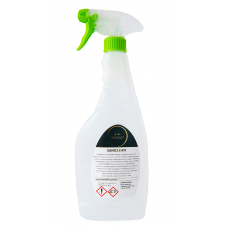 Saniclean v najboljšem primeru razvije svoje protibakterijsko delovanje, če ga uporabljamo po temeljitem čiščenju površin. Pršite neposredno z razdalje približno 20 cm. Čas stika najmanj 5 minut do največ 15 min. Nato odstranite s krpo za enkratno uporabo. Sperite površine v neposrednem stiku s hrano.