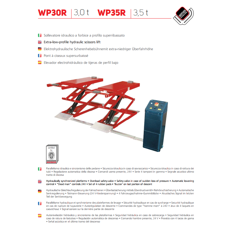 Navozno dvigalo ali za v tla. Nosilnost 3t, rdeči, dvig 2m.